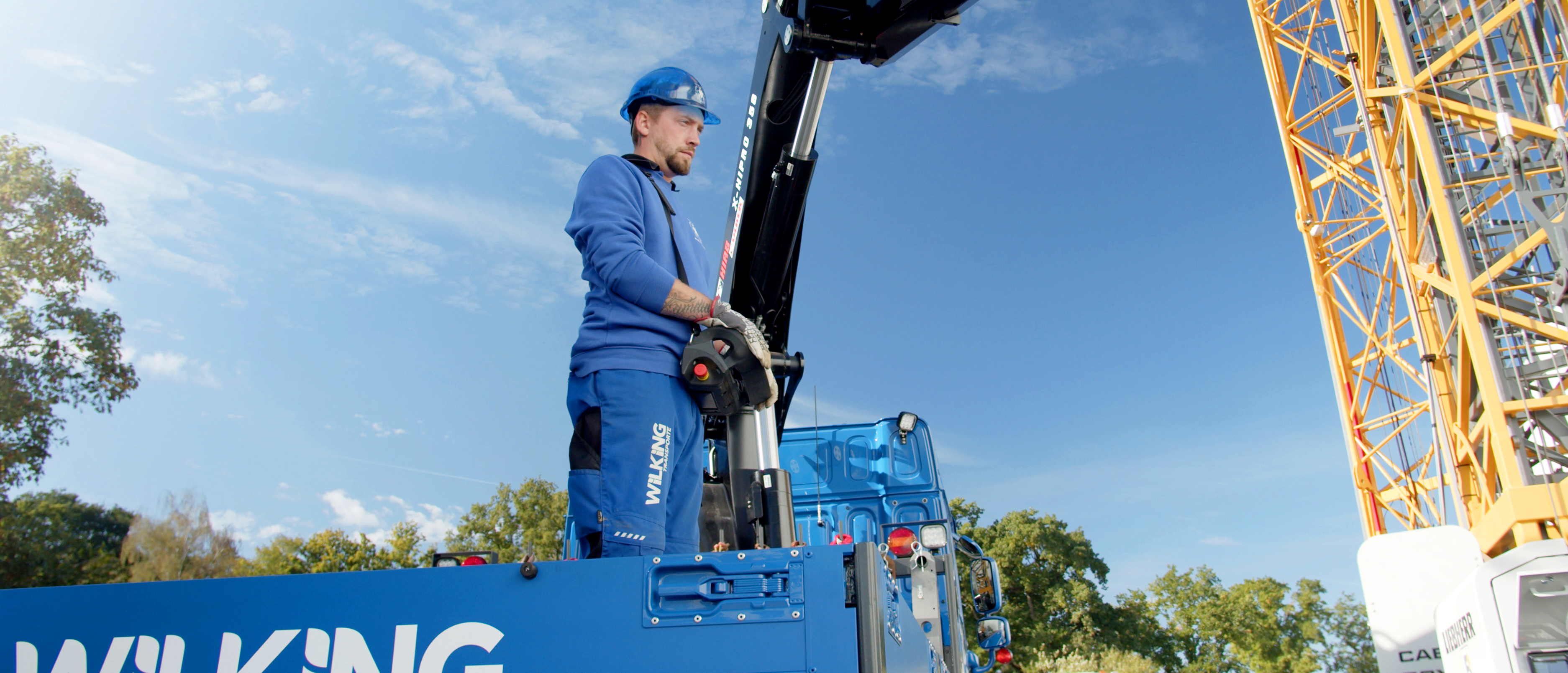 Mit mehr als 100 spezialisierten Fahrzeugen liefern wir für jede Herausforderung die passende Lösung. Ob Transport von Betonteil, Garage oder Turmdrehkran: Wir denken king-sized und bieten Ihnen maximale Flexibilität. Unsere Erfahrung zeigt sich in jedem Kilometer und jeder Lieferung. Besonders unser Team ist der Grund dafür: Unsere Stärke liegt nicht nur in der Ausrüstung, sondern vor allem in den Mitarbeitern. Denn erst durch sie bringen wir unsere Leidenschaft auf die Straße. Am Ende des Tages ist es das gekonnte Zusammenspiel von Mensch und Maschine, von Herz und Technik, das WILKING einzigartig macht.